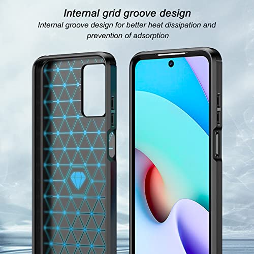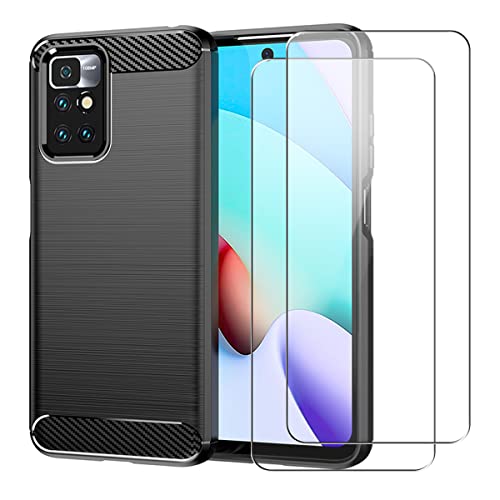 Cover per Xiaomi Redmi 10 4G, con 2 Pezzi Vetro Temperato Pellicola Protettiva, Nero Robusto Morbido TPU Anti-Caduta Protettiva Custodia Phone Case Cover Xiaomi Redmi 10 4G / Redmi 10 2022 6.5"
