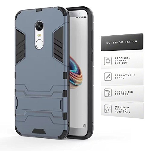 Cover Xiaomi Redmi 5 Plus, GOGME [Tough Armor Series] Robusto Pannello Posteriore PC Antigraffio + Paraurti Antiurto TPU+ Pratico cavalletto, Blu Navy