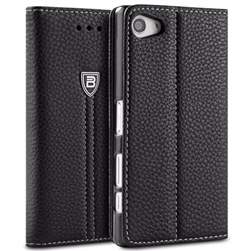 BEZ Cover Xperia Z5 Compact, PU Custodia Compatibile per Sony Xperia Z5 Compact, Protettiva Portafoglio Flip Cover con Kickstand Fuction - Nero