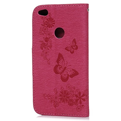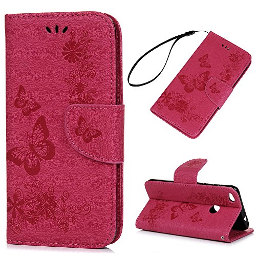 Cover/custodia a libro in Pelle (poliuretano) + tasca interna in TPU e chiusura magnetica, per Huawei P8 Lite 2017, colorata, Blu con Fiori e Farfalle + Touch Pen + TAPPO Anti Polvere