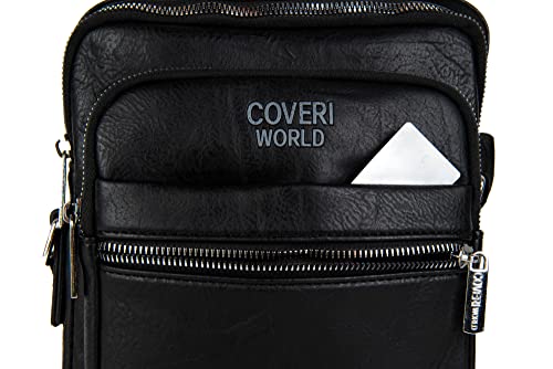 COVERI Borsa Borsello Ecopelle Tracolla Uomo Lavoro Ufficio Tempo Libero Portacellulare Tasche Zip ART.2166 Dimensioni 25 X 20 X 6 Colore NERO