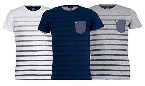 T-shirt moda uomo con righe orizzontali e taschino a contrasto