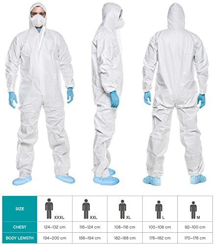 ACE CoverX Tuta da lavoro con cappuccio - tuta protettiva monouso per il lavoro - contro sostanze chimiche e particelle - bianco - XL
