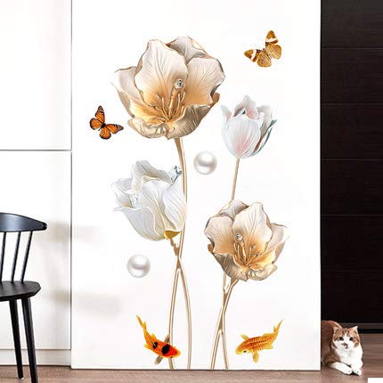 COVPAW Adesivi da parete Tulipano Fiore Home Decor Lobby All Room Decal rimovibile soggiorno camera da letto corridoio scala (arancione)