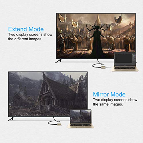 【Modalità multiple】 L'adattatore da USB C a HDMI supporta sia la modalità specchio che la modalità estesa. Non solo puoi sincronizzare lo schermo del tuo smartphone o laptop compatibile con la TV / monitor per visualizzare i tuoi film preferiti in full HD con uscita audio digitale multicanale, ma puoi anche mettere i tuoi film preferiti sul grande schermo e utilizzare il computer per fare altre cose in linea.