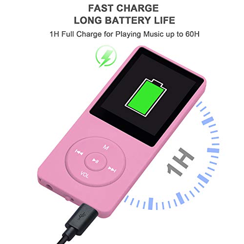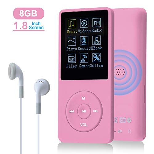 COVVY 8 GB Lettore musicale MP3 portatile da, supporta schede di memoria SD fino a 64 GB, lettore MP3 HiFi con audio senza perdita, registrazione di musica/video/voce/radio FM(8G,Rosa)