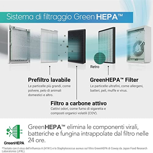 COWAY AIRMEGA 150 Purificatore d'Aria con Tecnologia GreenHEPA - Rimuove il 99,999% di Particelle fino a 0,01 µm*, Virus e Aerosol - Certificato ECARF per Soggetti Allergici (White)