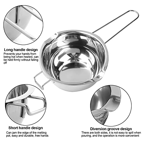 Cozlly Ciotola di Fusione in Acciaio Inossidabile 304,Crogiolo per bagnomaria con 2 beccucci,Ciotola di Fusione Pentola a Doppia Caldaia,per Far Fondere Cioccolato,Burro,Formaggio,Candela,Sapone