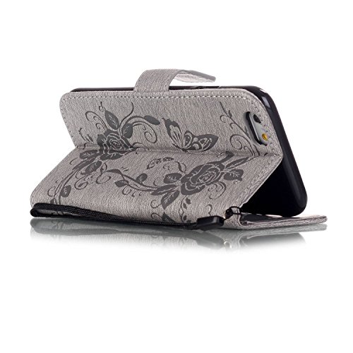 Cozy cappello motivo floreale Design cristallo scintillante Strass lucido lucido - di lusso di farfalle custodia in pelle case borsa in ecopelle, colorati stampa motivo in pelle PU Custodia Portafoglio Custodie cellulare Wallet Case Flip Cover Custodia in pelle con funzione leggio e scomparti per carte di credito per iPhone 6 Plus/6S Plus (5,5 pollici) Grigio Gray iPhone 6 Plus / 6S Plus (5,5 Zoll)