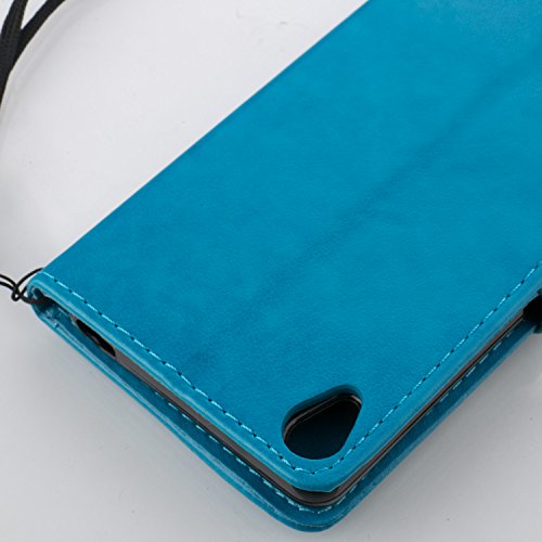 Cozy Hut Custodia portafoglio / wallet / libro in pelle per Sony Xperia XA Custodia in Pelle Stampata Morbida PU Case Cover - Cover elegante e di alta qualità,Funzione di sostegno Stand,con la copertura del raccoglitore per la Carte - Progettazione fiore e la farfalla sollievo per Sony Xperia XA - blu