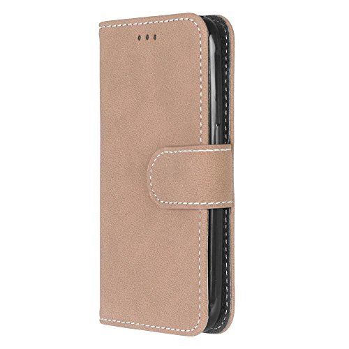 COZY HUT Per Samsung Galaxy J1 2016 Cover Custodia,Retro Matte Design con Magnetico Snap-on Book Style Internamente Silicone TPU Custodie Cover per Samsung Galaxy J1 2016-Beige Smerigliato