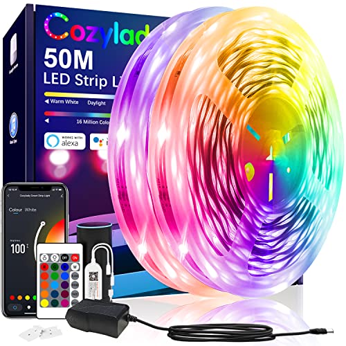Cozylady Alexa Striscia LED 50M, Smart WiFi RGB Strisce LED Controllata da Telecomando, App e Voce, Funziona con Alexa Google Assistant, Modalità Musica,Timer Striscie LED per casa Bar Festa