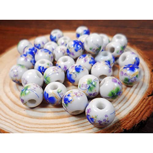 Cozylkx 50pcs 10mm Perline di Porcellana Fatte a Mano, Perline di Ceramica Floreale a Foro Grande Perline Rotonde Sciolte per Collana Braccialetto Orecchino Fai da Te