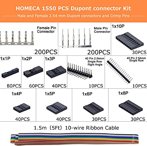 Cozywind Set di 1550 pinze a crimpatura Dupont da 2,54 mm, connettori Dupont + Crimp Pins + 1IDC, pinza crimpatrice per 0,14-1 mm²