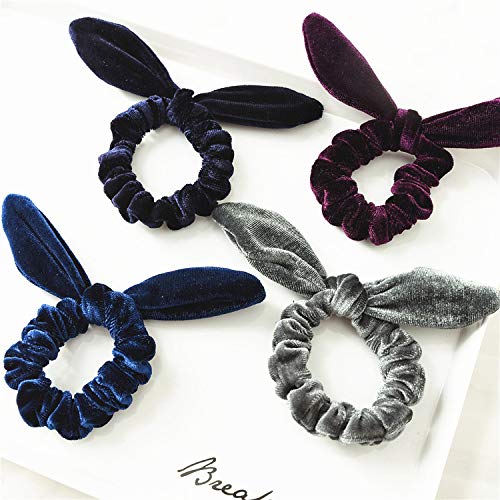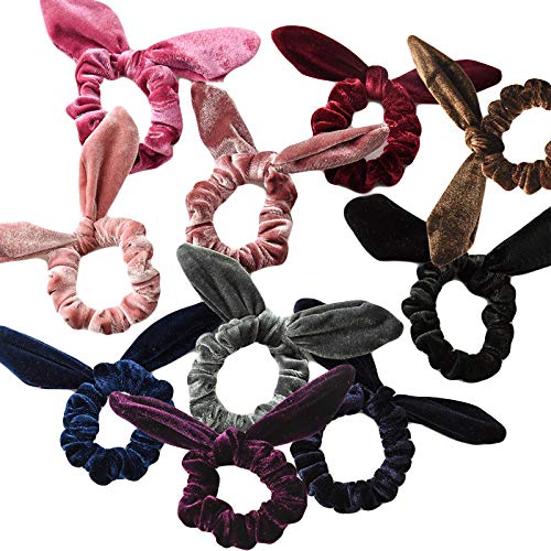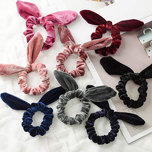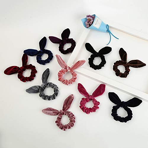 10 pezzi in velluto con orecchie da coniglio scrunchies