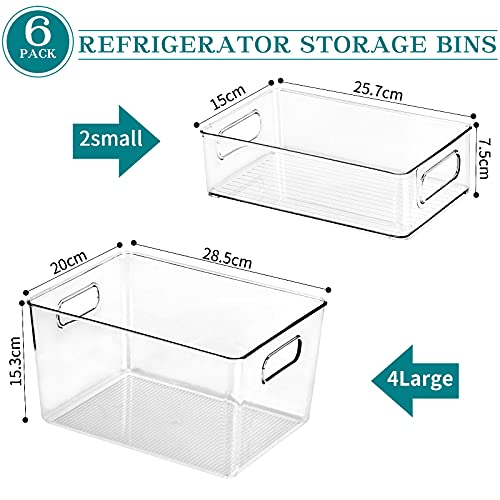 Cozywind Organizzatori per Cucina Contenitori Salvaspazio Frigorifero Contenitori da Frigo per Alimenti, Frutta e Verdura Set di 6 Contenitori Plastica (4 grandi e 2 piccoli)