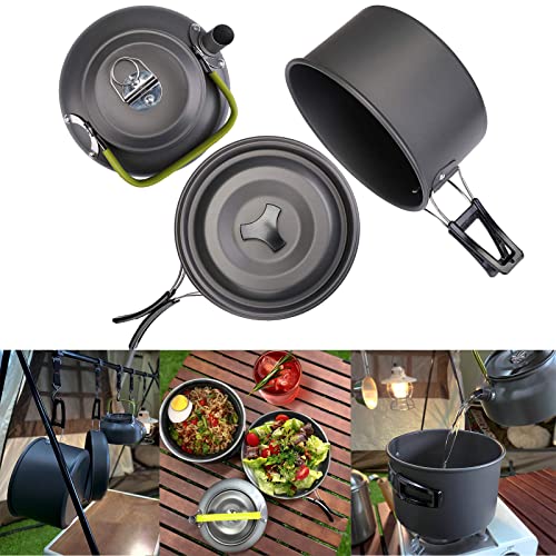 Set di Pentolino da Campeggio Leggero e Portatile: il set di pentole da campeggio è facile da trasportare poiché è compatto e leggero. È ideale per gite in campeggio, escursioni, come pentole extra per attività all'aperto come picnic in famiglia