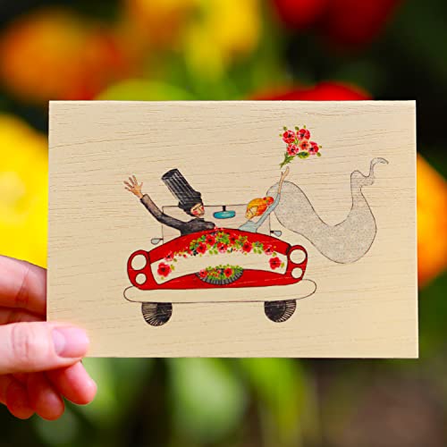 Cozywood Biglietto di auguri in legno per matrimonio, biglietto d'amore in legno per lui e per lei, biglietto di auguri in legno di alta qualità, romantico biglietto d'invito, auto Bulli