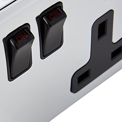 Aet CPC2GUSBBL - 2banda 13 una doppia presa di cromo classica presa lucidato con porte usb di ricarica e inserto nero interruttore a bilanciere di plastica