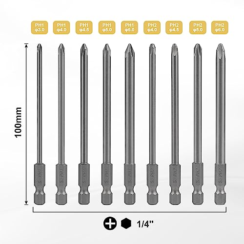 CPROSP 9x Bit Avvitatore Lunghi 100mm, Punta a Croce Con Codolo Esagonale Per Cacciaviti Elettrici Manuali, Trapani
