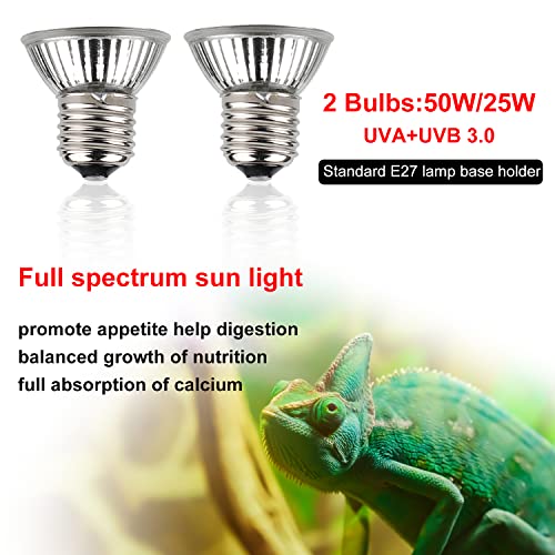 CPROSP Portalampada e27 Rettile, con 2x 50W Lampada Spot di Calore Dimmable, Lampada Riscaldante Presa con Interruttore, 1,8M Cavo e Spina, Lucertola Tartaruga UV, Presa in Porcellana Ruotabile a 360°