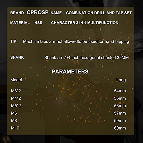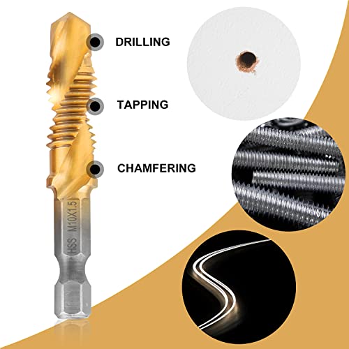 CPROSP Set 9 Punte per Filettatura e Sbavatura, Metrica M3-M10 con Rivestimento in Titanio HSS, Punte Trapano Maschi, Countersink Tap per Forare che per Filettare, D'oro