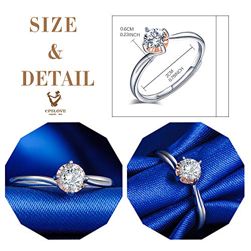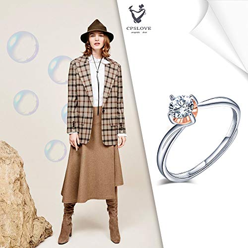 CPSLOVE Anelli donna in argento sterling 925, Anello in zirconi a quattro artigli, misura regolabile, Regalo di anniversario di matrimonio