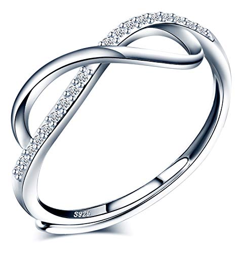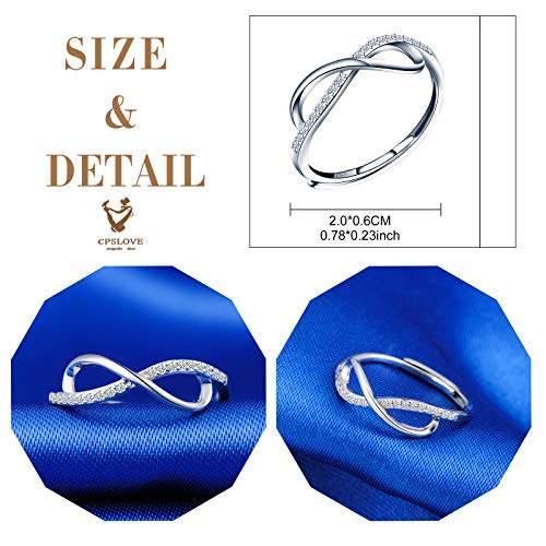 CPSLOVE Anelli da donna da ragazza, anello in argento 925, anello simbolo infinito, zircone intarsiato, anello aperto, misura regolabile, fede nuziale, circonferenza delle dita adatto:48,5-57mm