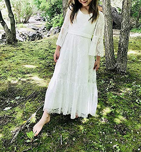 CQDY Abiti da Ragazza con Fiore Bianco Abiti da Sposa Ragazza Abiti da Damigella d'Onore Festa Principessa Prom Abito da Battesimo Avorio