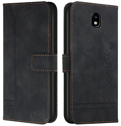 Cqkob Cover per Samsung Galaxy J330/J3 2017 Euro Custodia protettiva in silicone TPU premium, Custodia Portafoglio con Supporto Slot per Schede Chiusura Magnetica-Nero