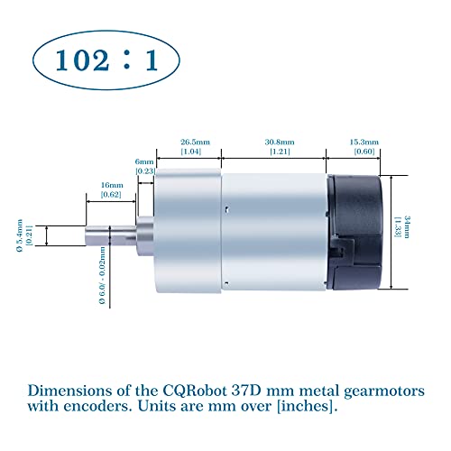 CQRobot Ocean: 102:1 Metal DC Geared-Down Motor 37Dx72.5L mm 6V/12V, with 64 CPR Encoder and Bracket. 6V-4W-50RPM-19 kg.cm(256 oz.in), 12V-8W-100RPM-34 kg.cm(470 oz.in), D-shaped Output Shaft 16mm.
