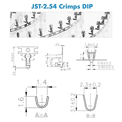 360 pezzi pin del connettori DIP a crimpare JST-XH passo 2,54 mm.