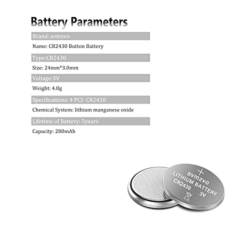 Stoccaggio e affidabilità a lungo termine - Le proprietà chimiche di 300mAh AVMZVO CR2430 sono molto stabili, leccate o che esplodono mai in esplosione. CR2430 ha una durata fino a 5 anni.