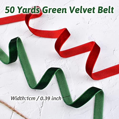 CRAFFANCY Nastro di velluto verde scuro, 50 m nastro di velluto a faccia singola in seta vintage morbido nastro per bouquet di fiori di nozze decorazione natalizia