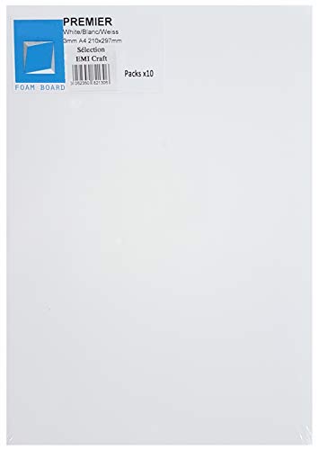EMI Craft - Pannelli in schiuma, classici, A4, 3 mm, colore: Bianco (Confezione da 10)