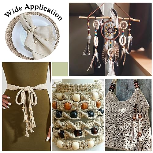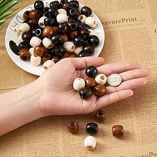 Craftdady 200 perline distanziali in legno cilindriche, con foro grande, in 4 colori, ovali, per dreadlock, capelli, rosario, macramè, gioielli fai da te, foro: 8 mm