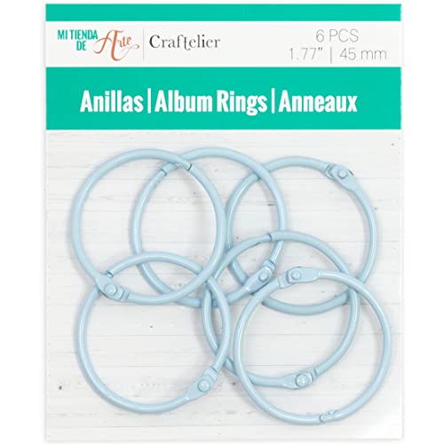 Craftelier - Set di 6 anelli metallici ad anello per rilegatura ideali per scrapbooking e artigianato, anelli per album, quaderni, planner o agende | dimensioni Ø 45 mm - colore blu baby