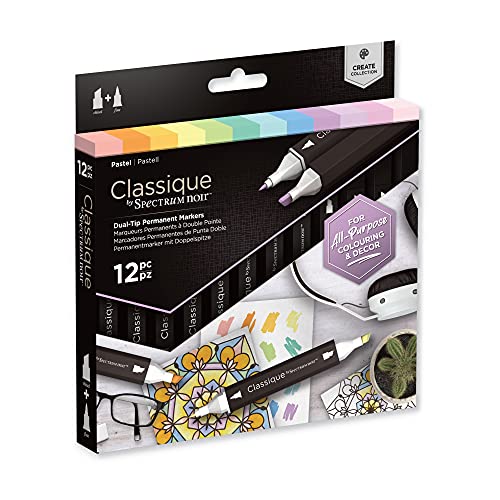 Crafter's Companion Spectrum Noir Classique Creare Alcol Marker Doppio Pennino Penne Set Pastello Confezione da 12, Pastel, Taglia unica, unità