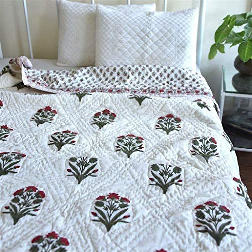 Concedetevi questa trapunta in puro cotone realizzato con filati anni '60 e filo alto ispirato alle stampe Jaipuri secolari e alle tradizioni tessili, realizzate da artigiani di Jaipur.
