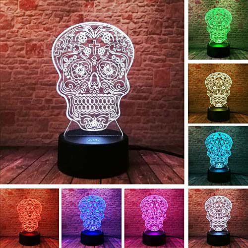 3D Cranio Testa Teschio Lampada Da Tavolo Luce Notturna 16 Colori Cambiamento Pulsante Touch Led Illuminazione Decorativa Lampada Da Tavolo Per Bambini Regali Compleanno E Decorazione Del Partito