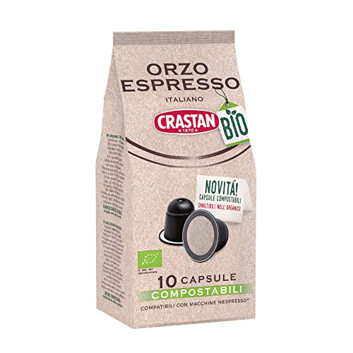 CRASTAN 1870, 10 Capsule, 1 Box da 10 Capsule Compostabili di Orzo Espresso Biologico, Capsule Compatibili con Sistema Nespresso, Bevanda Senza Glutine, 100% Made in Italy