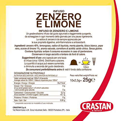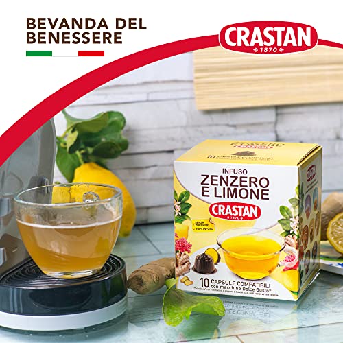 CRASTAN 1870, 60 Capsule, 6 Box da 10 Capsule di Infuso al Gusto Zenzero e Limone, Capsule Compatibili con Dolce Gusto Senza Zuccheri Aggiunti, Senza Glutine, 100% Made in Italy