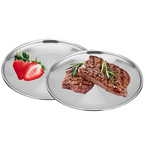 Cratone - Set di 2 Piatti da Campeggio Alpine, in Acciaio Inox, Diversi diametri, Argento, 14cm