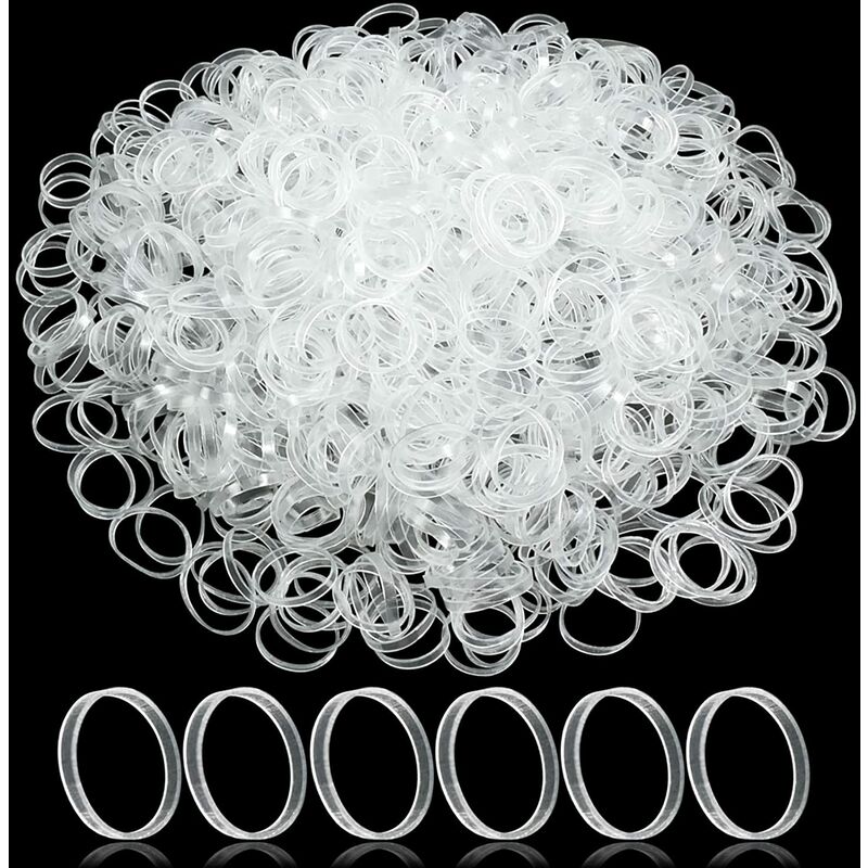 Elastico per capelli - : Il mini elastico per capelli trasparente è un elastico per capelli per donne e uomini che non lascia segni, è delicato sui capelli. Piccoli elastici pratici per trecce o acconciature simili. [1000 pezzi]: Ci sono 1000 elastici per capelli trasparenti, sufficienti per la sostituzione o il ricambio. Possono anche essere rimossi facilmente senza impigliarsi e aggrovigliarsi. 1,1 mm di spessore e 1,6 cm di diametro;