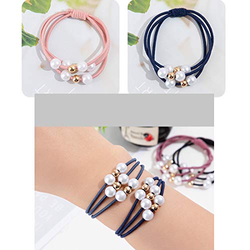 Cravatte per capelli con perle elastiche, diversi stili di acconciature, elastici per capelli, elastici per capelli, per coda di cavallo senza perla, accessori per con fiocco portafortuna (8 pezzi)