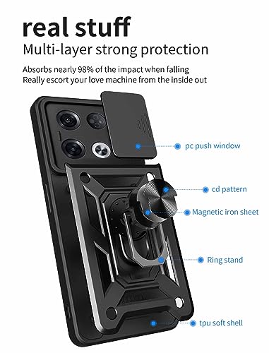CRAVEN Cover per Oppo Reno 8 PRO 5G (Reno8 PRO 5G), Robusto PC + TPU Doppio Strato Protettivo Custodia con Porta Anello e Copertura Scorrevole della Fotocamera, Oro Rosa