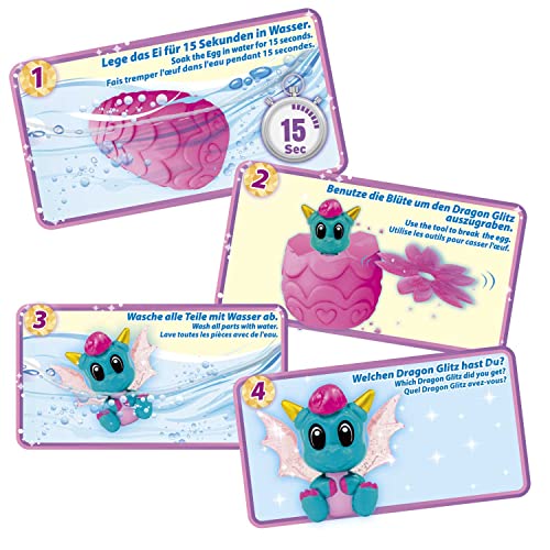 CRAZE Dragon Glitz Uovo a sorpresa con figure di drago all'interno, uovo rosa con figura di drago, 1 di 6 figure a caso, multicolore