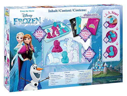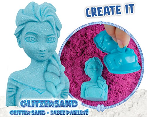 Contenuto: ca. 600 G SABBIA in glitter bianco, glitter rosa e glitter turchese e 5 stampi, 1 vasca e 1 spatola da modellare