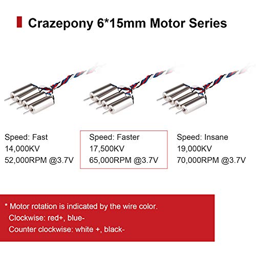 Crazepony-UK 4pcs 6x15mm Motor (Speed: Faster) 17500KV TW Special Sauce Edition for Blade Inductrix Tiny Whoop with Micro JST 1.25 Plug Bonus Rubber Rings