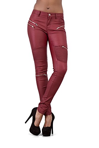 Crazy Lover Pantaloni Donna Similpelle Rossa a Vita Media, Skinny Fit con Tasche Posteriori - Eleganza e Confort (44, Biker Borgogna)